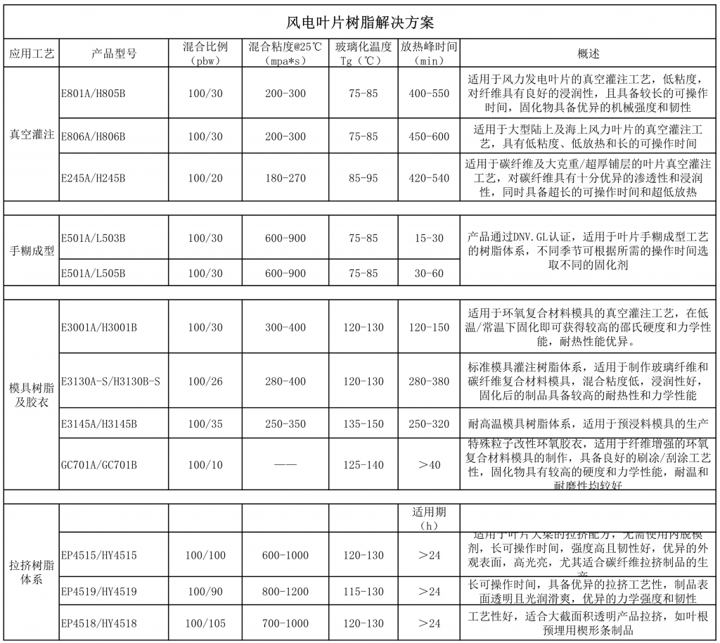 主要為風力發電葉片的主梁、殼體以及葉片模具的生產和制造提供系統的樹脂產品解決方案。